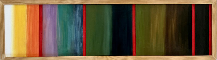 De rode lijn die hierop volgt markeert het begin van een periode van onstandvastigheid. Er zijn nog lichte momenten, maar het donker wint terrein; de lichtheid raakt steeds meer op de achtergrond.